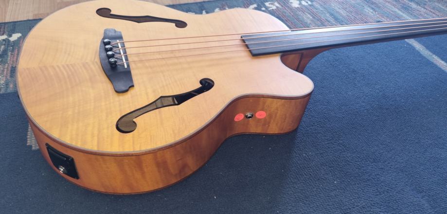 Bas elektro-akustični fretles Aria-Japan proizvodnja (bez pragova)s zvučnikom (ugrađeno u njemačkoj) dolje ima izlaz za dodatni zvučnik kao i izlaz za u mix ili pojačalo, s rezervnom baterijom, remenom, original kavalitetnom torbom i 2 punjača žice nisko a ne žbrenči i lagano se gazi prodajem za 500e, zvati na 091-519 36 49, nalazim se u Đurđevcu