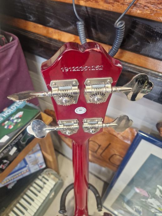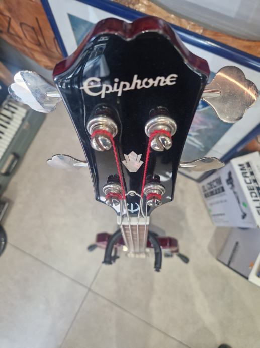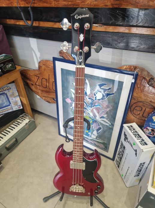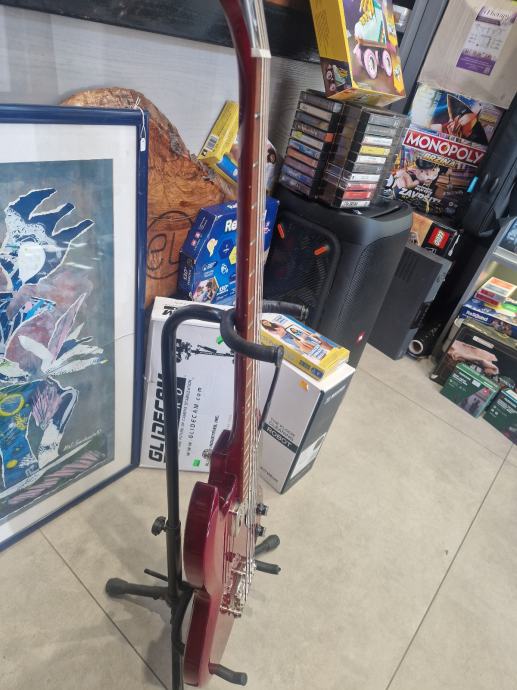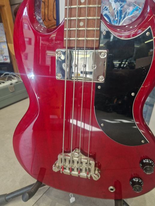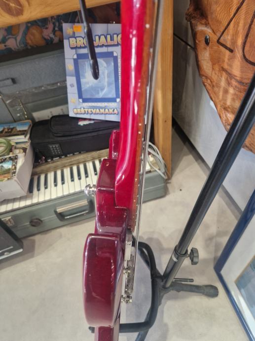 Prodajemo odličan ispravan bas Epiphone EB-0 idealan za klasični rok, grunge, sludge, reggae, .. . Korišten je jedan pasivni humbacker tipa SideWinder koji daje topli, vinted zvuk s jakim niskim tonovima.