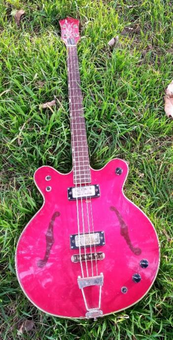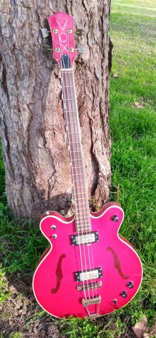 Bas gitara Vox model VG4 iz 1969.g u vrlo dobrom i funkcionalnom stanju. Vintage look, iznenađujuće dobar zvuk i jak signal te definitivno raritet na tržištu/u prilogu cijene ovakve gitare na reverb.com