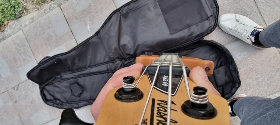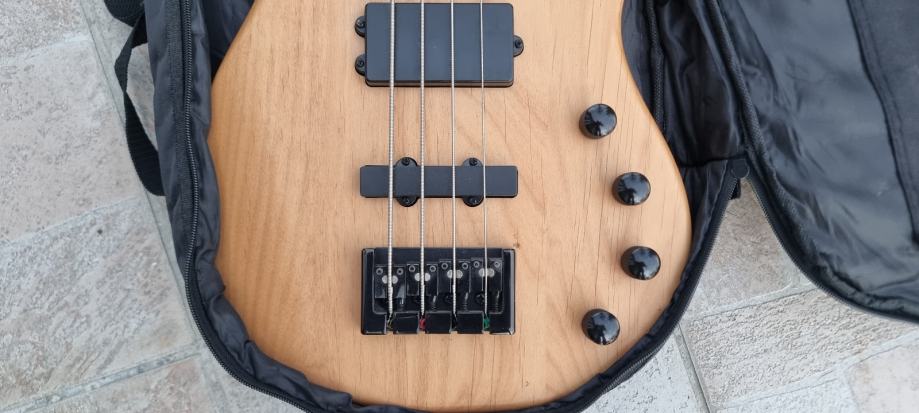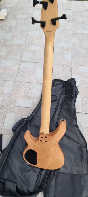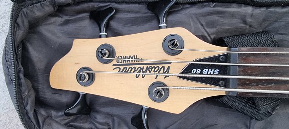 Izvrsna bas gitara koja je nastala kao rezultat dugotrajne suradnje između Washburna i Stu Hamma, basiste koji blisko surađuje sa steve Vaijem i Joe Satrianijem. Ova bas gitara je u potpunosti izrađena po Stu Hammovim specifikacijama. Model s potpisom! Tijelo od johe, bolt-on vrat od javora, prstohvat od palisandera (rosewood), 24 praga, aktivna elektronika u "MM" i "J" stilu, 2 volume, 1 blend, 1 tonski i 1 piezo potenciometar, crni hardver. Odlično očuvano, doslovno kao novo.