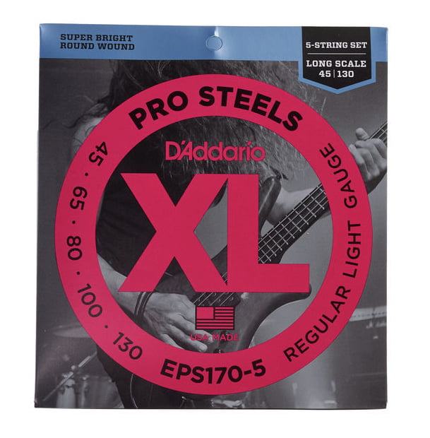 Žice za 5-žičani bass; 045-065-080-100-130; Regular light ProSteel; Long scale.