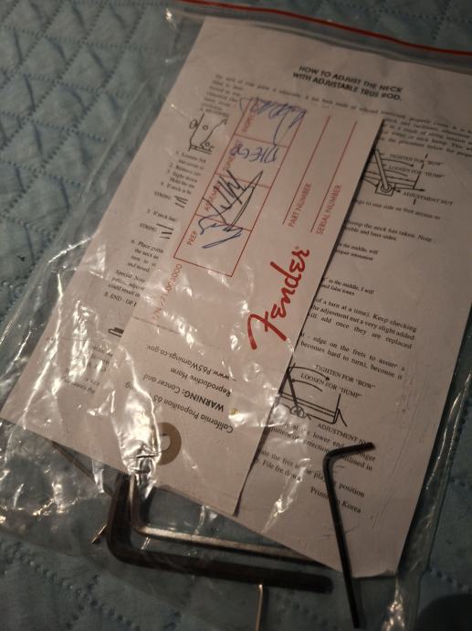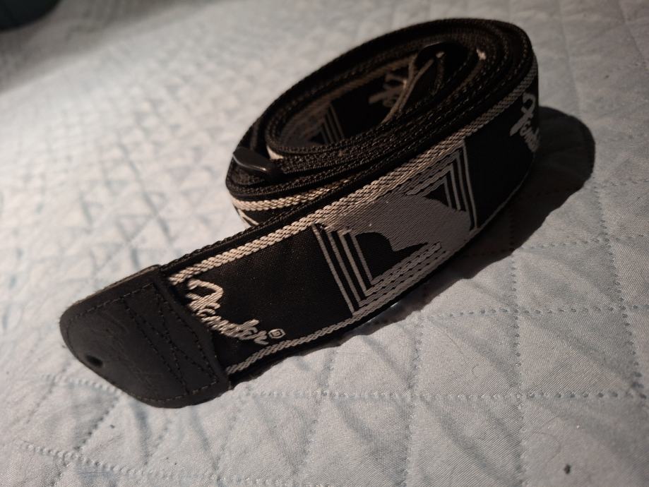 Uz njega dajem Fender gig bag, set novih light Rotosound 66 Swing žica (koje su i na njemu), i remen.