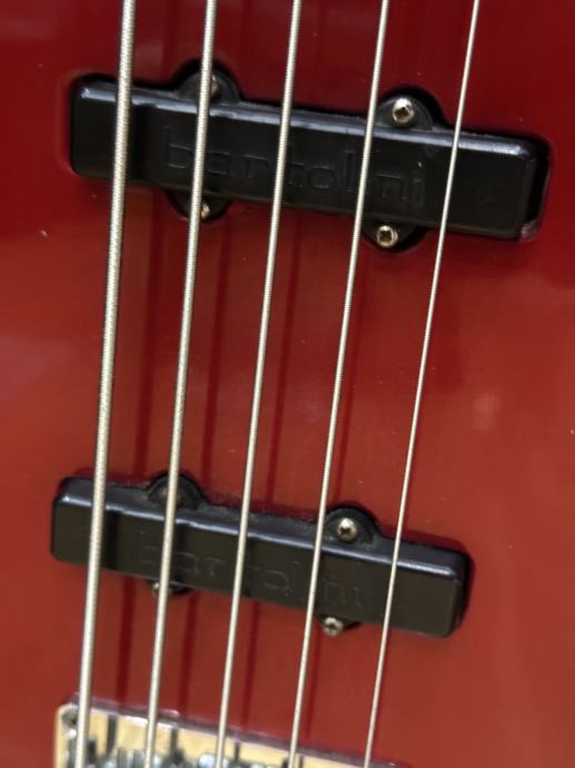 Bartolini aktiva i pickupi, 2 band stackani pot za aktivne kontrole, volume pot, pickup pot i pasivni tone pot.
