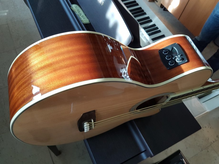 elektro-akustični bass, s prednjom pločom od smreke, bočne i stražnje strane su od sapele; jumbo; 22 polja.