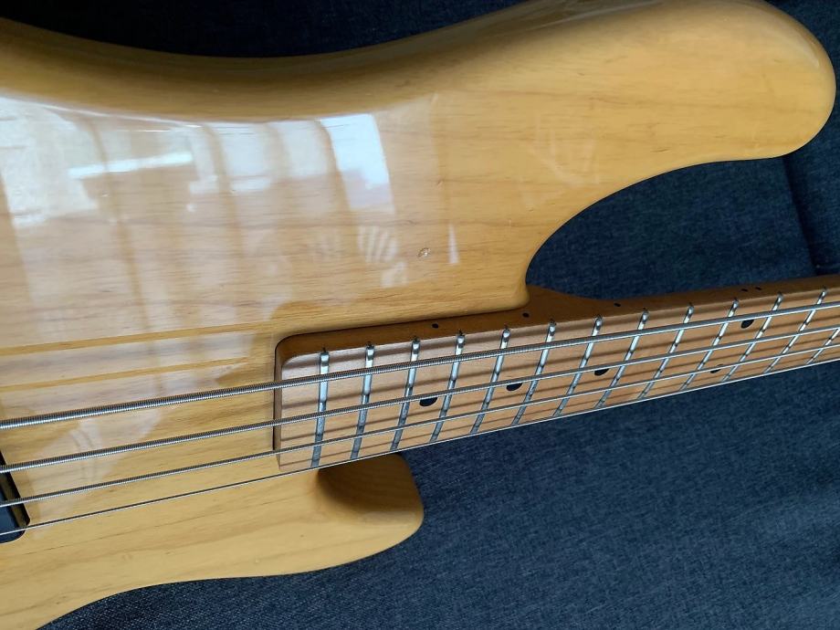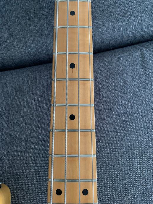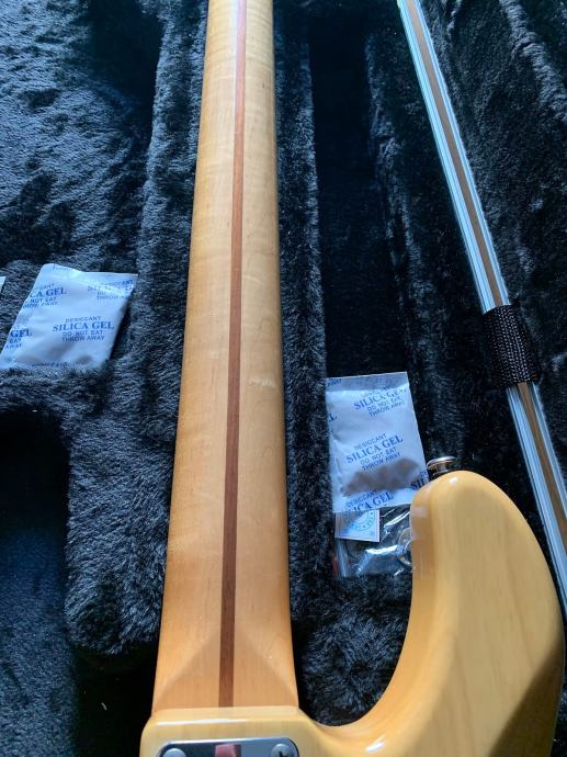 Ima znakove korištenja, ogrebotine i na mjestima oguljen lak ali sve radi bez problema, i samo je kozmetičke prirode. Vrat je ravan i truss rod se glatko okreće.