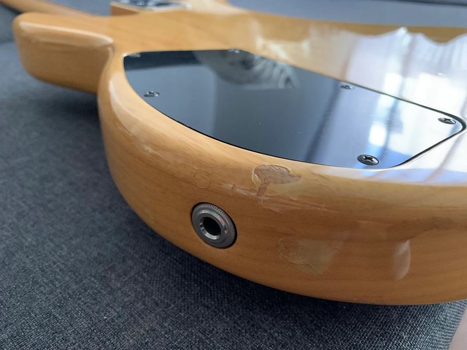 Swamp ash tijelo, maple vrat/fingerboard i vintage tint. Ovi japanci su rađeni kao vintage replike - stariji oblik tijela, 7.25" radius fingerboarda i bone nut. Odrađen je fret leveling i polishing. Dolazi s novim Ernie Ball Hybrid Slinky nickel roundwound žicama (45-105).