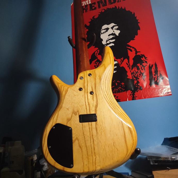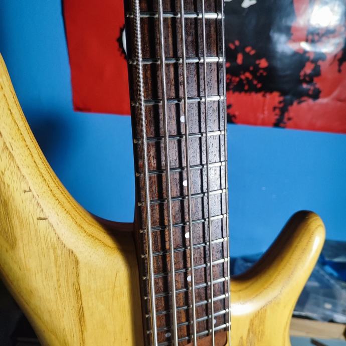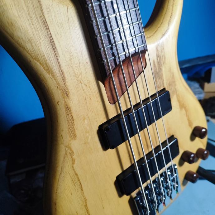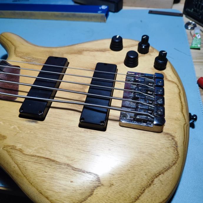 Bass je friško setupiran, odrađeni pragovi, na njemu Daddario EXL 165-5 nove, uz bass i dodatni set istih zapakiran. E sad, na basu je novi bridge, elektronika i kapice potenciometara, bridge jer original nije "primao" 135 B žicu, elektronika jer me Ibanezova mrvicu zezala, stacked pots se malo vrte skupa kod okretanja što me užasno smetalo. Uz bas dajem i original bridge i original elektroniku i kapice potova, dolazi u thomman delux torbi. +pošto ova vrsta tunera zna vrisnut dajem uz njega i par rezervnih komada zlu netrebalo. Na fotografijama imate i foto kako izleda u originalu, tu sam za sva pitanja i dogovore.
