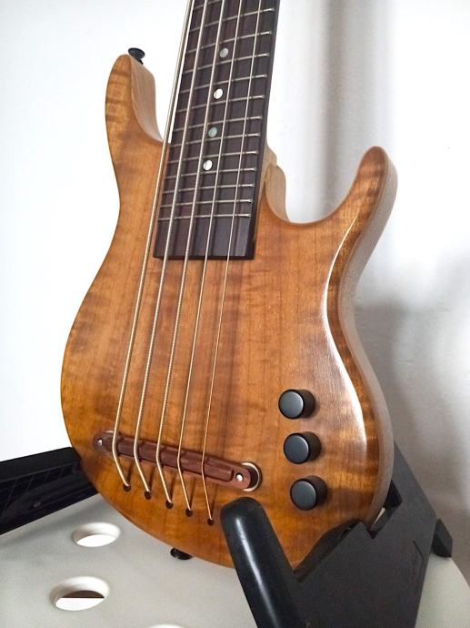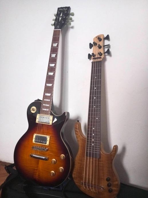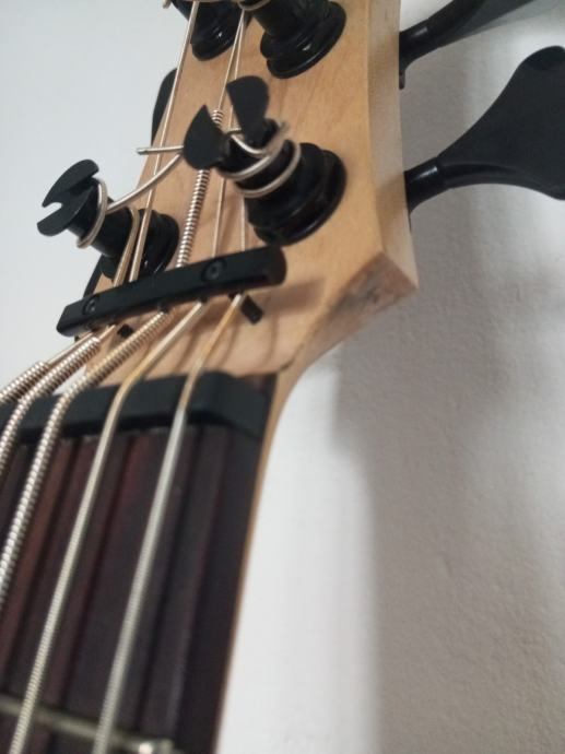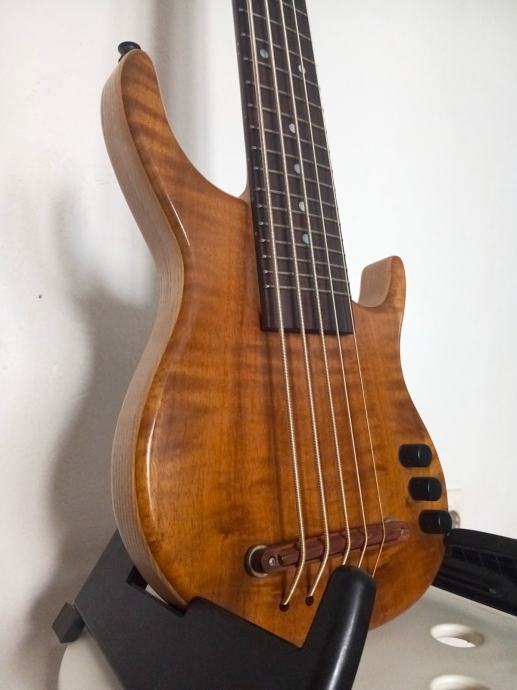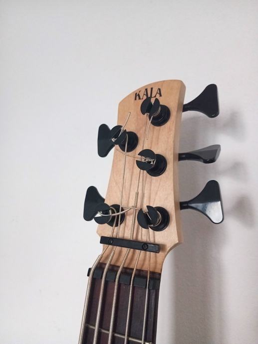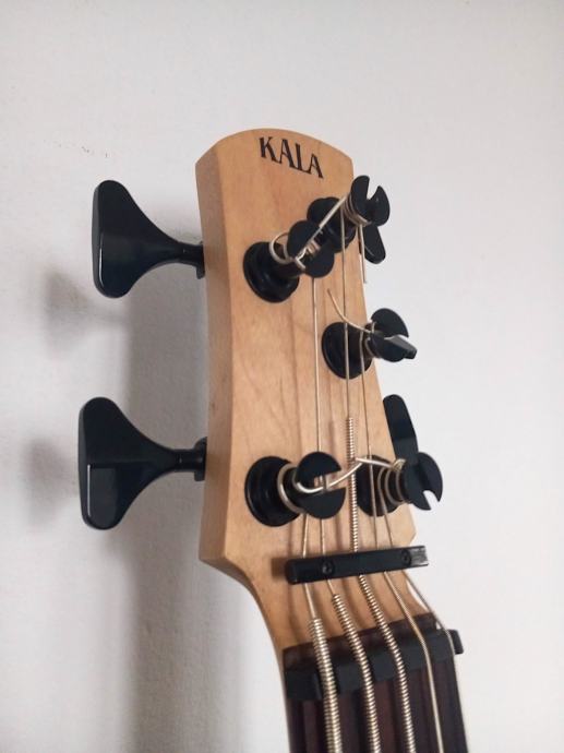 Odlican "mini" bas. Ima trenutno Kala "silver plated round wound" zice, ali imam stare gumene zice, tako mozete uzeti. Ima torbu.