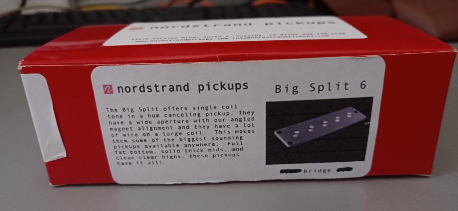 Pickup za 6 žičnu bas gitaru kupljen kod warwick.de prije godinu dana, bio je na basu 2 mjeseca dok je trajao popravak originalnog pickupa. https://shop.warwick.de/en/pickups/e-bass/soapbar/19496/nordstrand-big-split-6-string-pickups