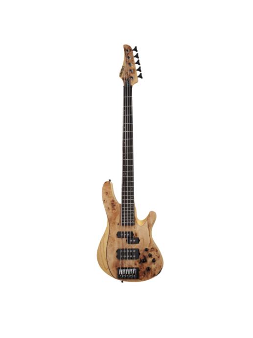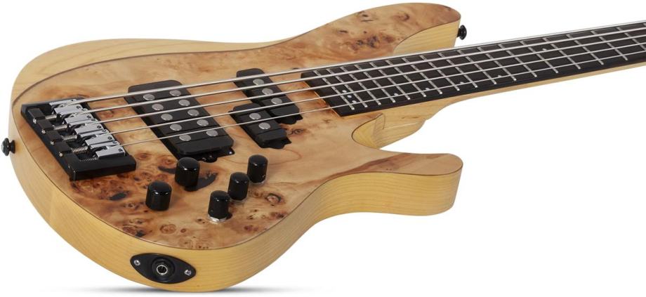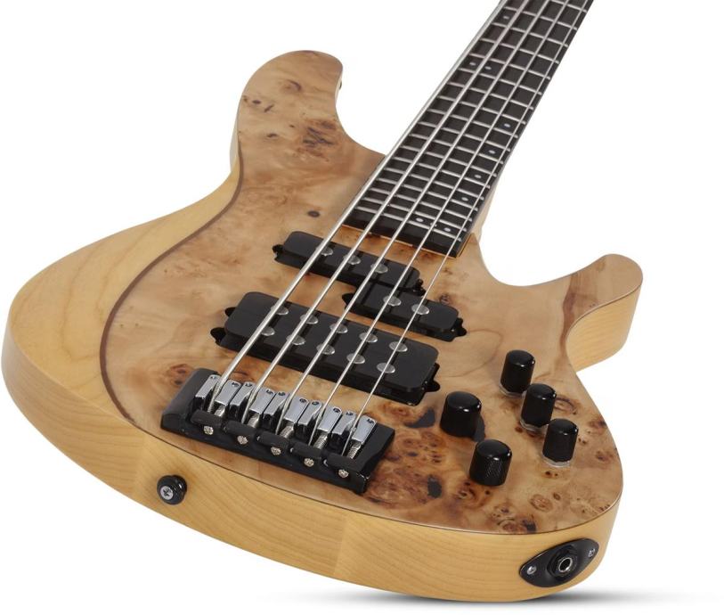 Električna bas gitara s tijelom od močvarnog jasena i prednjom pločom od dekorativne burl strukture topole, namijenjena glazbenicima koji traže snažan ton, prošireni raspon i vrhunsku ergonomiju. Vrat od javora s orahovim umetkom i karbonskim ojačanjima pruža stabilnost i preciznost. Prstohvat od ebanovine s offset točkastim umetcima omogućuje glatko sviranje, dok 35″ skala i 24 jumbo praga nude dodatnu dubinu tona. Ugrađeni Schecter USA M-50 i P-50 pickupovi s Darkglass Tone Capsule EQ-om i 18V napajanjem pružaju široku paletu zvukova. Most s mogućnošću string-thru ili top-load montaže dodatno povećava fleksibilnost. Gitara je idealna za moderne stilove, uključujući metal, progresivnu i eksperimentalnu glazbu.