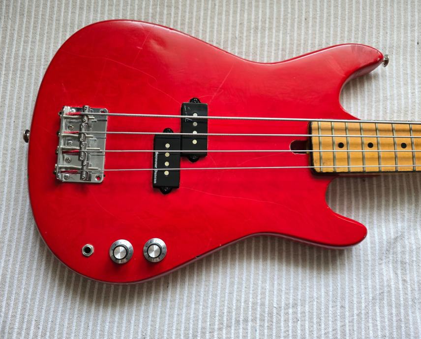 Zvuči vintage. Kako mu je pickup pomaknut malo prema bridgeu, ne zvuči kao precision, ima više artikulacije. Mislim da sam dobro pogodio kombinaciju pickupa i žica.