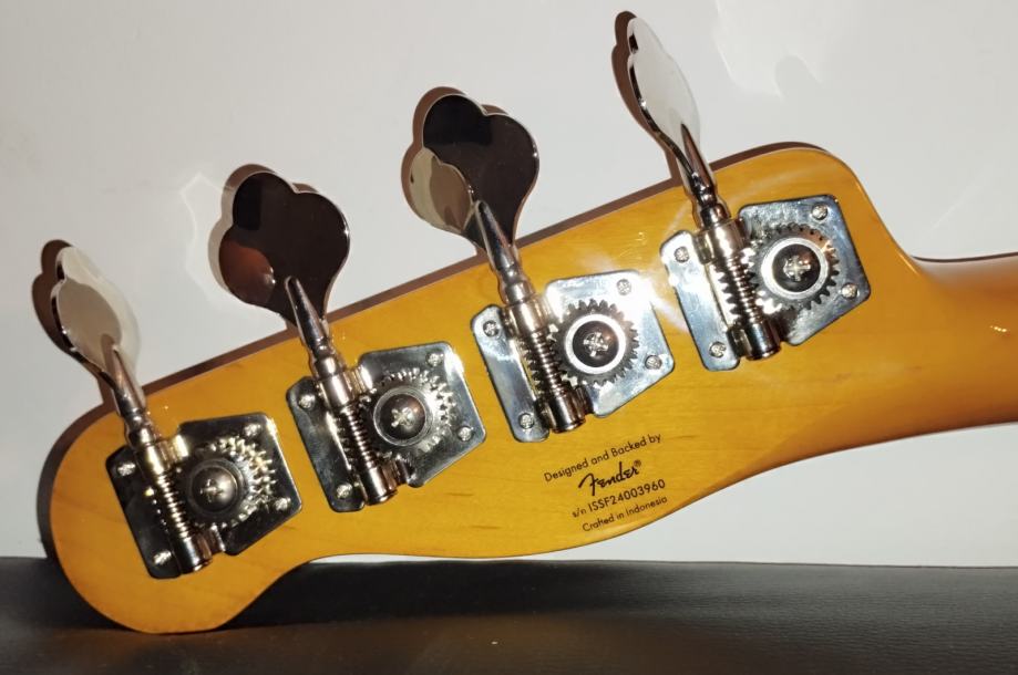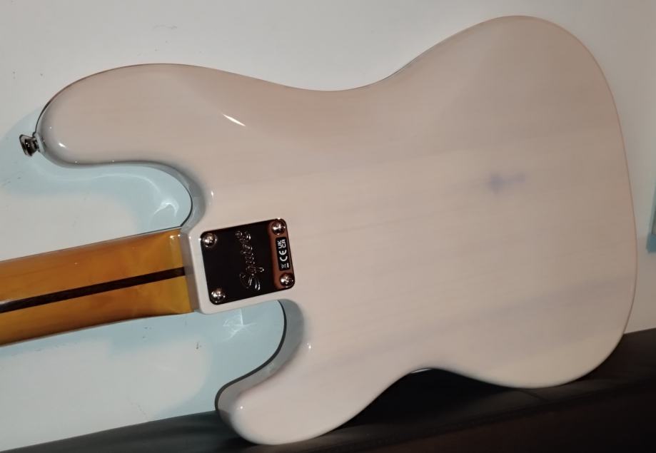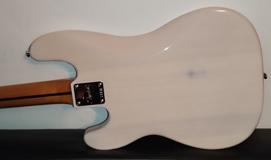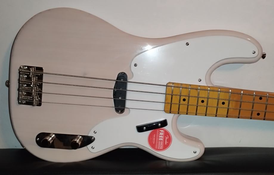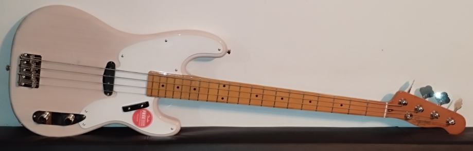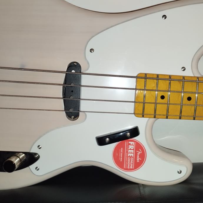 Squier CV 50s P Bass MN WHB – Pine body, Bolt-on maple neck, maple fretboard, C neck profile, 20 narrow tall frets, bone nut, 1 Fender-designed alnico single coil pickup, Controls: Master volume and master tone, Colour: White Blonde. Weight: 4,35kg.