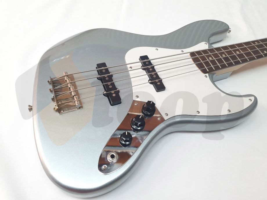 Squier Affinity bas gitare daju najbolji omjer kvalitete i cijene. Affinity Jazz bas ima tijelo od johe, vrat od javora s prstohvatom od laurela, dva jazz bass single-coil pickupova, 20 medium jumbo praga i troslojni pickguard. Moćan ton i odlična svirljivost. Boja: Slick Silver