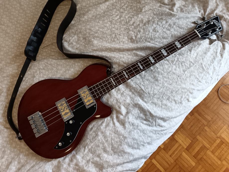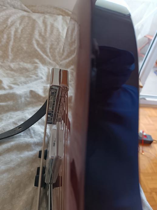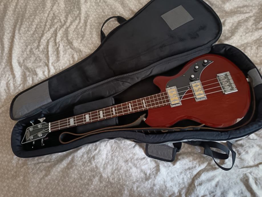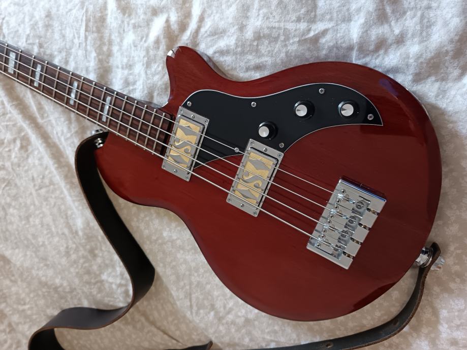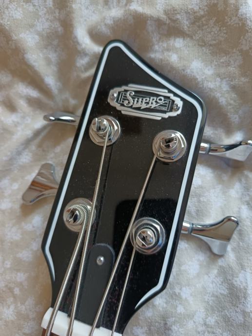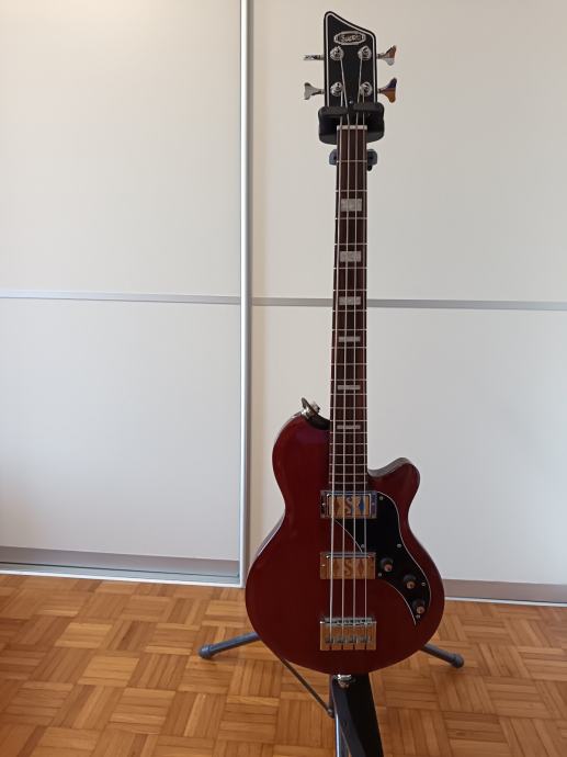 Izvrstan i rijedak Short scale bass. Jako dobro stanje. Dolazi s naknadno kupljenim Airline gig bagom, flatwoud Chromes na njemu, još 2 seta rabljenih (Pyramid i Daddario) i set novih Rotosound žica. Moguće zamjene. Dostava uključena u cijenu.