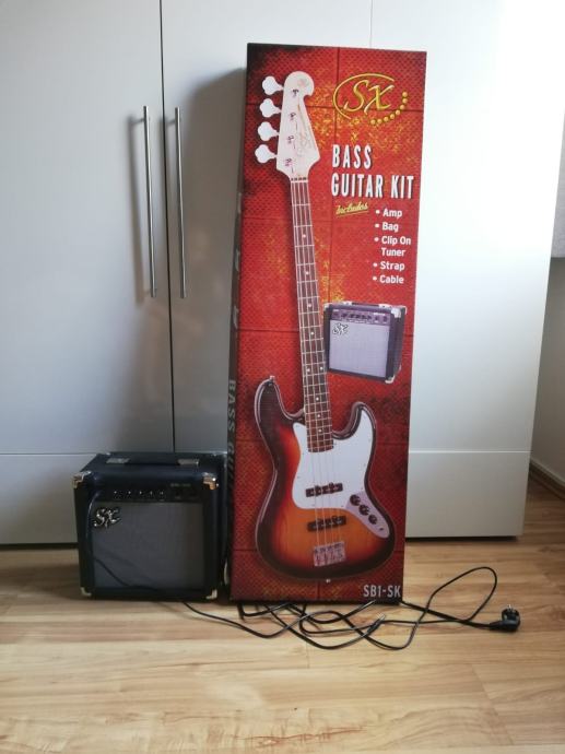 Kao novo, koristio sam 5-6 puta i shvatio da sam anti-talent za glazbu. U kompletu se nalazi: bas gitara, 15W combo-pojacalo s kablom, tuner, remen i transportna torba