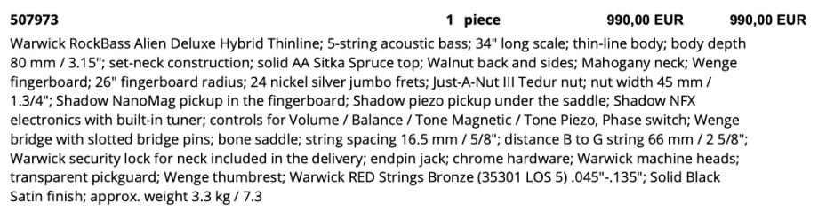 Warwick 5 RockBass Alien Deluxe Hybrid Thinline