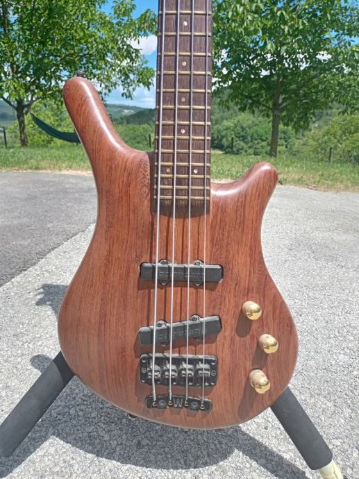 Prodajem Warwick Thumb bass iz 1989. kupljen 1990. u Njemačkoj. Na njemu je sve originalno samo je 1997. godine zamjenjena elektronika (pretpojačalo) u ovlaštenom servisu u Zagrebu kod gospodina Klancira. Tada su stavljene i zlatne kapice na potenciometre umjesto originalnih crnih (koji dajem uz gitaru). Na njemu se nalaze magneti Bartolini (USA).Pragovi nisu nikad mjenjani ali još uvijek se može dobro svirati. Uz gitaru ide i gig bag u kojem je kupljena. Drvo je Bubinga i premazuje se posebnom warwickovom pastom koja isto dolazi uz gitaru.