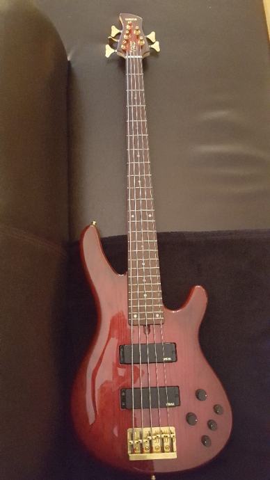 Bass gitara, petožičana u odličnom stanju, proizvedena u Japanu, pozlaćene mašinice i konjić, prvi vlasnik, malo sviran obzirom da sam klavirista! Povremeno korišten u studiju. Kupljen 2001g. Nema oštećenja!!! Dostava po dogovoru!