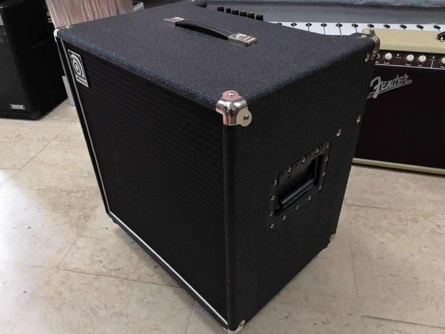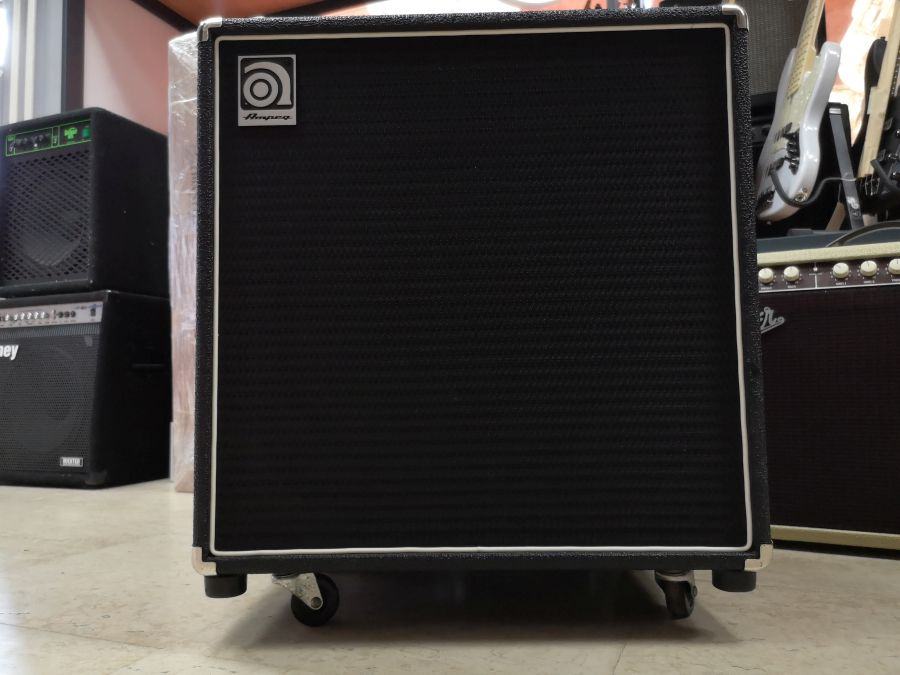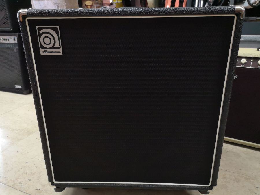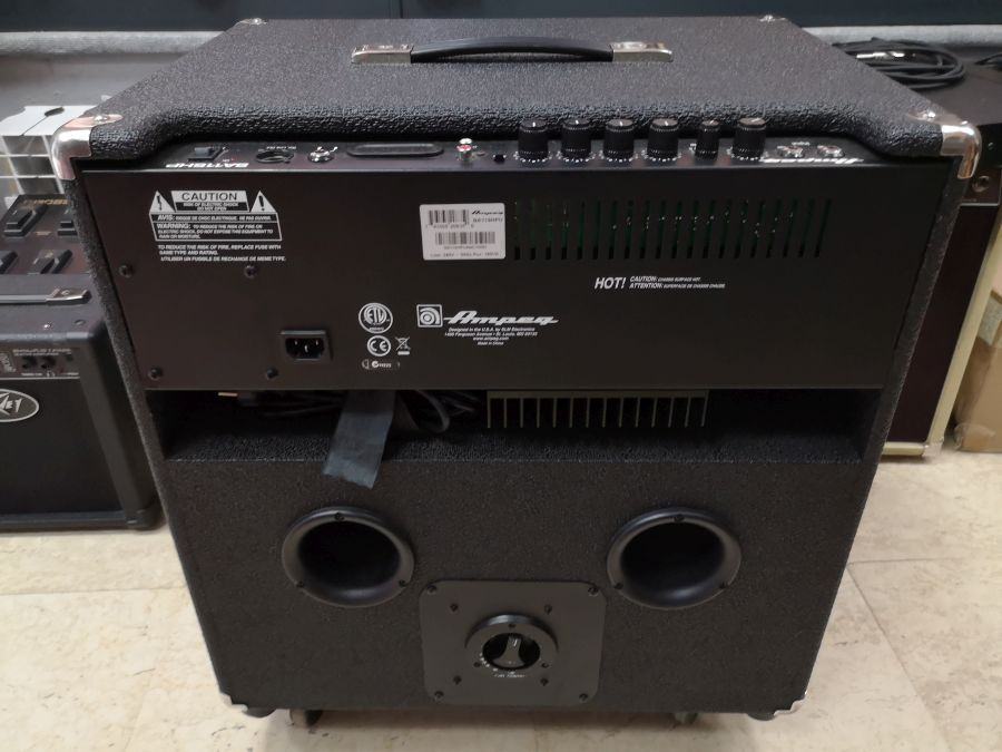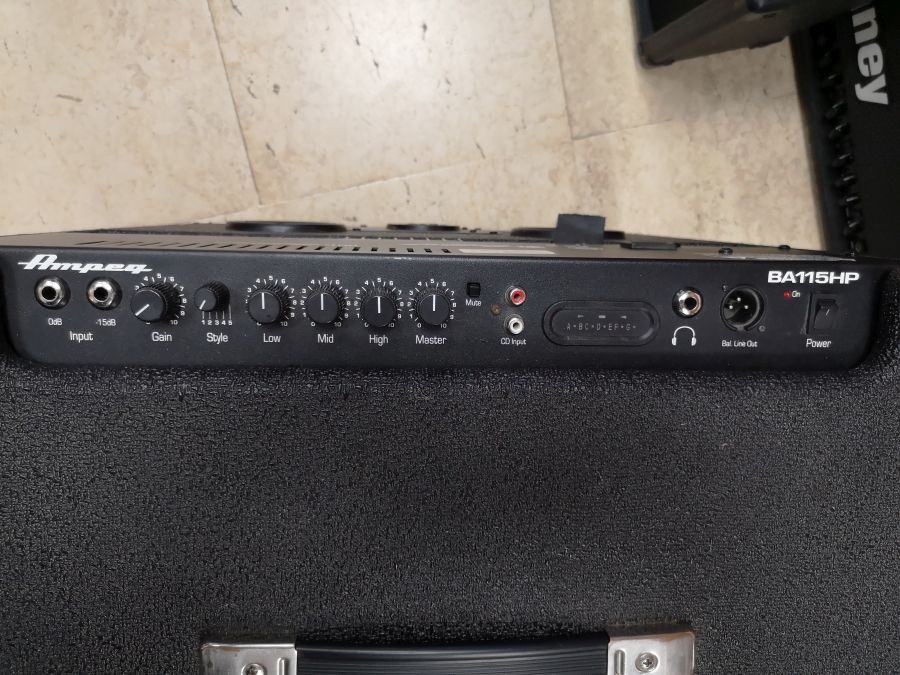 bas pojačalo, RMS Power Output: 220-Watts; LF Driver: 1 x 15" Custom Ampeg Speaker; HF Driver: 1" Compression Driver with Level; Solid-State; Tone Controls: 3-Band; Balanced Line Out; Tuner; Mute switch, CD Input, Headphone Output. Odlično očuvano, s kotačima za lakši transport.