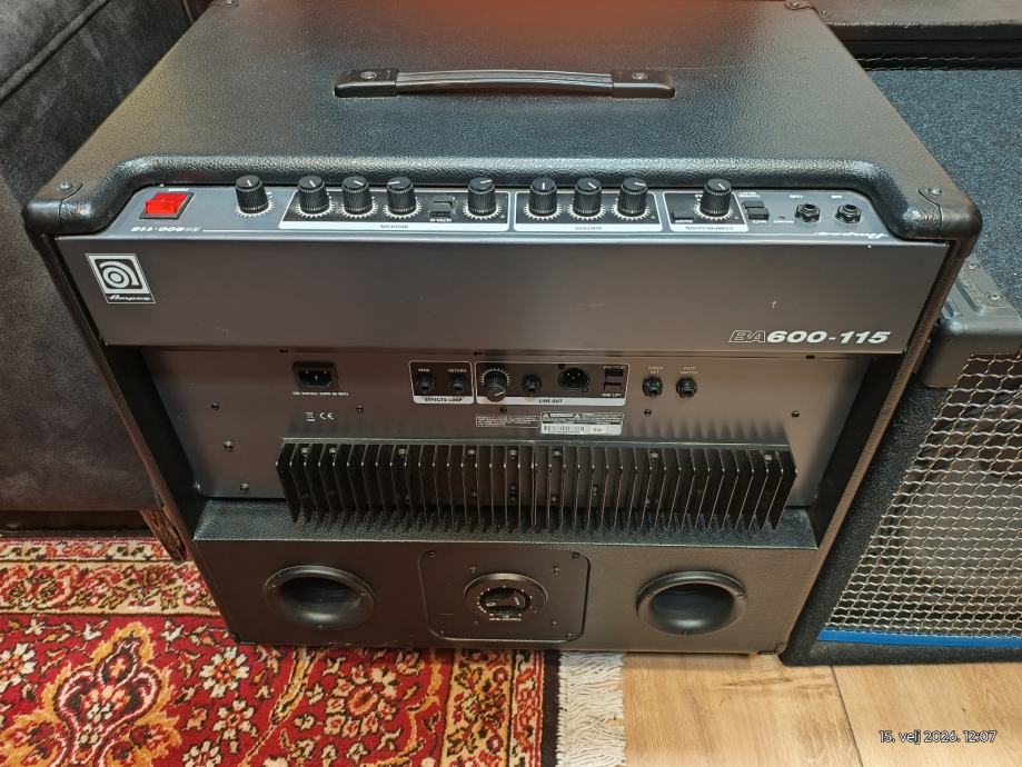 Bas kombo Ampeg BA115 snage 600 wati neodimski zvučnik,lagan za svoju veličinu,ima kotače i navlaku.Snage i basa ne fali ni za velike pozornice,sound vrhunski.