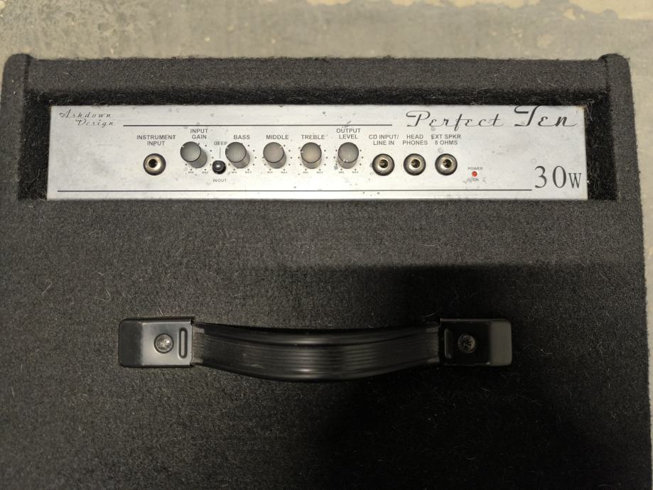 The Perfect Ten bass amp combines a 30W power section with a single 10" Ashdown BlueLine bass speaker. Sounds can be shaped quickly and intuitively using bass, mid, and treble controls, supplemented by a pre-shaped deep switch for added enhancement. Headphone output lets you practice whenever you want, and the external speaker out lets you connect another cab with ease.