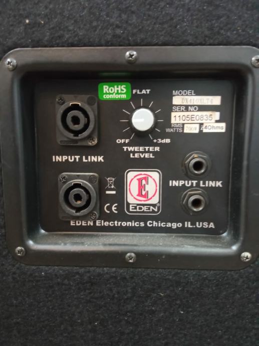 Prodajem ili mijenjam David Eden DX410XLT4 Made in USA 700 W. Box bez oštećenja. Box od šperploće napravljen da traje i o ovom boxu ne treba puno priće. Zvučnici original Edenovi sa okvirima od alu odljeva, a ne od prešanog lima ili kineski Celestion zvučnici sa limenim kućištem. Prodaja ili zamjena za bas pojačalo kombo.
