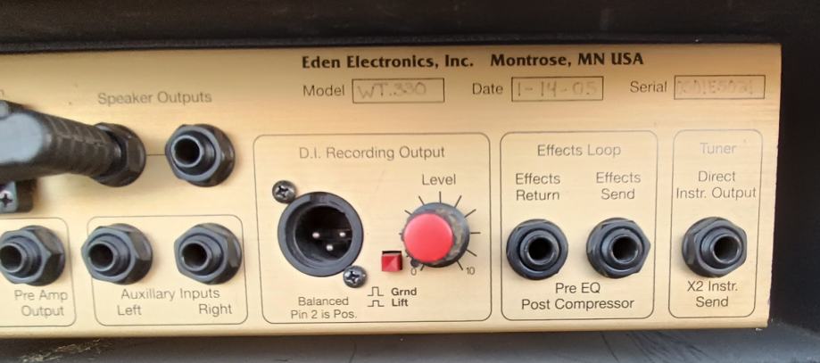 A dbx-style compressor with adjustable threshold is coupled to dual inputs and the renowned Eden Enhance control. The Time Traveler has an entirely new feature: an optically coupled dynamic smart booster for Bass and Treble. This allows for the Bass and Highs to be solid and well defined from a whisper to a roar. It automatically compensates for playing level so that the sound quality is maintained. Additional features include, multiple patch points, auxiliary inputs, variable distortion, pre/post DI selection, Mute to tune and a built in practice mode.