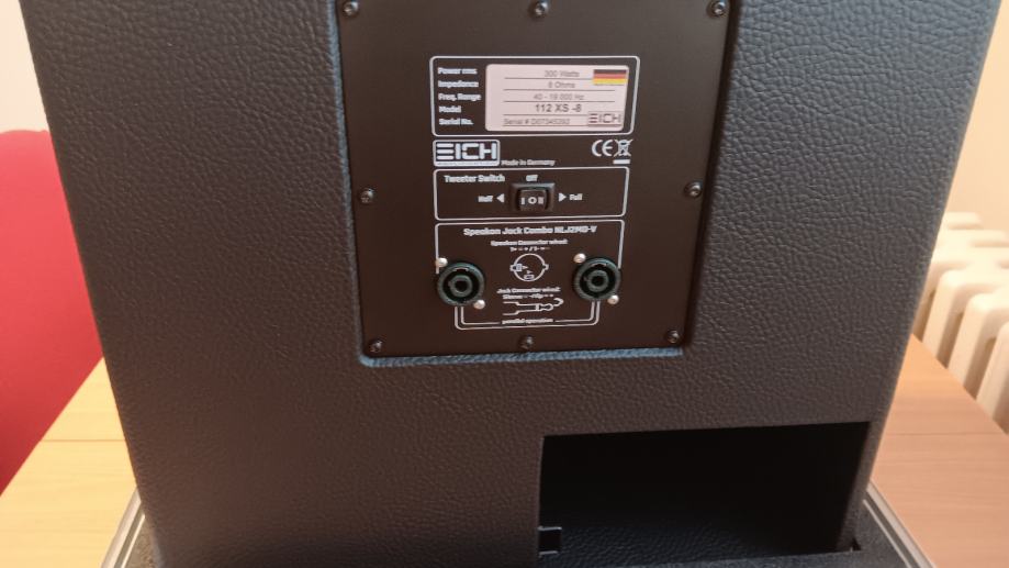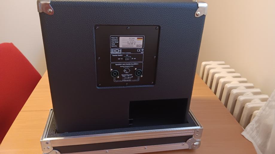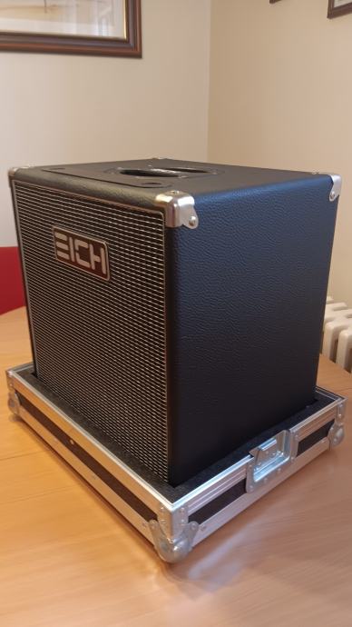 Eich XS-112 bas cab. prakticki novo i jako malo svirano. Unutra je Eminence bas zvucnik isto novi. Eich zvucnik koji je prakticki ne sviran, i naravno ispravan također je u cijeni. U cijeni je i flight case rađen tocno po mjeri.