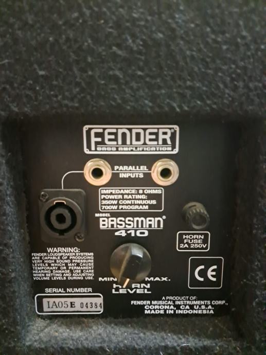 Prodajem Fender Bassman 410 4x10" Bass Cabinet - Black Eminence Inside, očuvan i sve radi savršeno.
