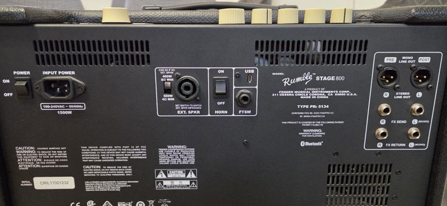 Digitalno pojačalo basova. Idealan za uvježbavanje i snimanje, Rumble Stage 800 iskoristio je moćnu snagu prerade našeg GT motora kako bi isporučio arenu vrijednu realističnih basova i modela efekta. Izradite vlastiti zvuk i nadahnite se s više od 15 modela i 40 efekata, a sve je moguće kontrolirati putem Bluetootha i ekskluzivne aplikacije Fender Tone. Kao prvi svjetski WiFi opremljeni bas pojačalo, Rumble Stage 800 olakšava istraživanje suvremenih zvukova i ažurira vašu paletu za nove zvučne mogućnosti. Pomoću aplikacije Fender Tone jednostavno je preuzeti najnovija ažuriranja, dodati nove modele pojačala i efekata, pristupiti unaprijed postavljenim Fenderovim izvođačima i povezati se izravno s zajednicom drugih kreativnih igrača i glazbenika. Razvili smo nove modele pojačala i efekata s još više vjernosti i realnijim odgovorom, zajedno s fleksibilnošću putanja signala, tako da možete premjestiti efekte bilo gdje u signalnom lancu za kreativno istraživanje. Programirajte zvukove u studiju na velikom LCD zaslonu u boji Rumble Stage 800 i zatim ih odnesite bilo gdje. Ulaz: utičnica od 6,3 mm. Kabinetni materijal: lagana šperploča. Ručka: lijepljeni plastični remen. Snaga: 800 W. Zvučnici: 2 x 10 "Eminence keramički magnet. Impedancija: 8 Ohm. Dimenzije: 45,70 x 57,90 x 69 cm. Težina: 17,94 kg. Boja: crna