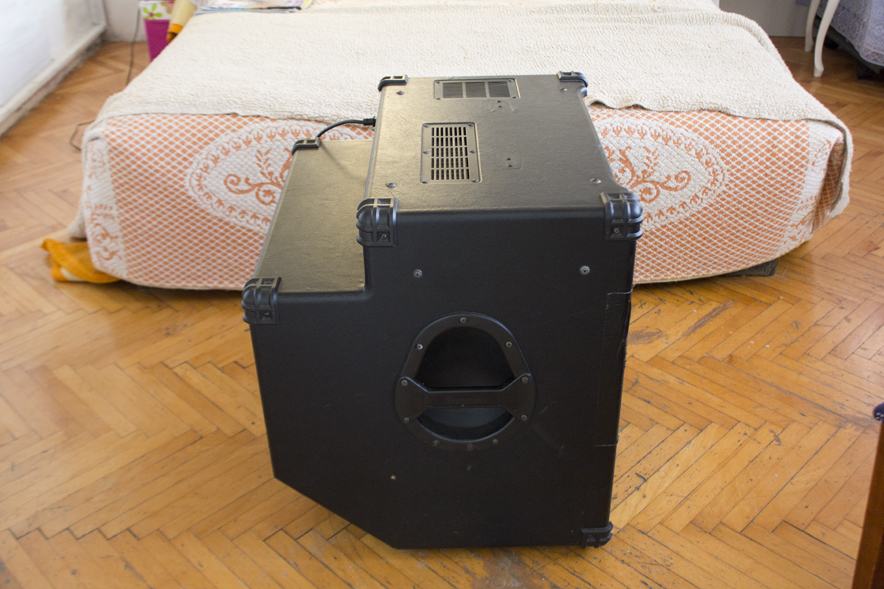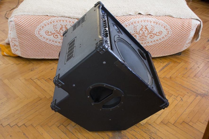 combo bas pojačalo snage 100 w sa 15 inčnim zvučnikom te tweeterom koji se može upalit ili ugasit na botun. pojačalo može stat uspravno ili nakošeno i sa obe strane ima ručke za nosit ga.
