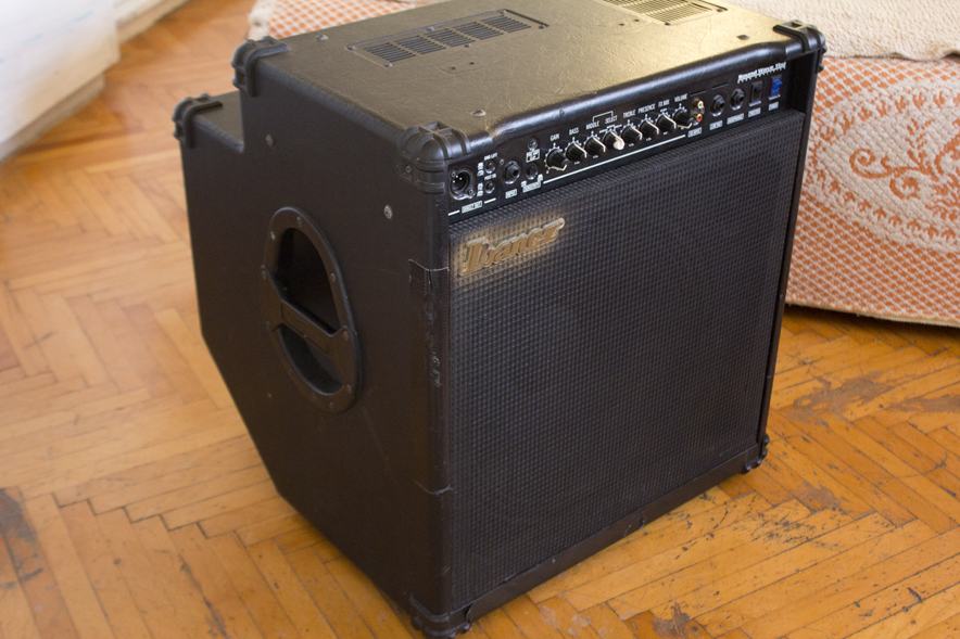 ima iznenađujuće dobar zvuk! prodajem ga jer sam izašao iz prostora prebacujem se doma na kućni studio i neman di s njim. drugi sam vlasnik, kod mene je niti godinu dana, korišten je samo u garaži te garantiram da je za probe s bendom idealan.