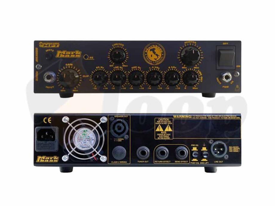 Markbass Little AG 1000; Bass Head, 1000W/4ohm, 600W/8ohm, Controls for Gain, Limiter, Bass, Mid 100Hz & 500 Hz), Treble (1.4kHz & 6 kHz), Master Volume, Line Out, Switches: Mute, Pre/Post, Ground Lift, Connectors: Input (6.3 mm jack), Speaker Out: Speakertwist and 6.3 mm jack , Effect Send and Return (6.3 mm jack), LINE OUT: XLR balanced, Tuner Out (6.3 mm jack), Footswitch Connector (EQ On/Off) 6.3 mm jack, ultra light & ultra compact, dimensions w x h x d approx. 27.6cm x 8.3 cm x 25 cm, weight approx. 3.2 kg