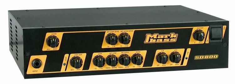 The Markbass SD800 is a professional solid-state bass amplifier head designed for high-power applications, such as big-stage performances.