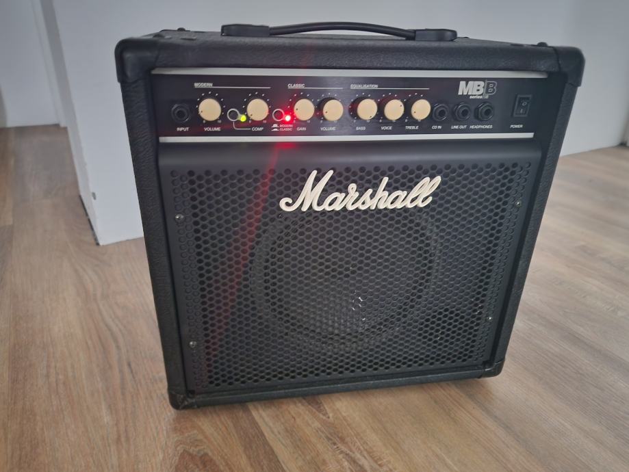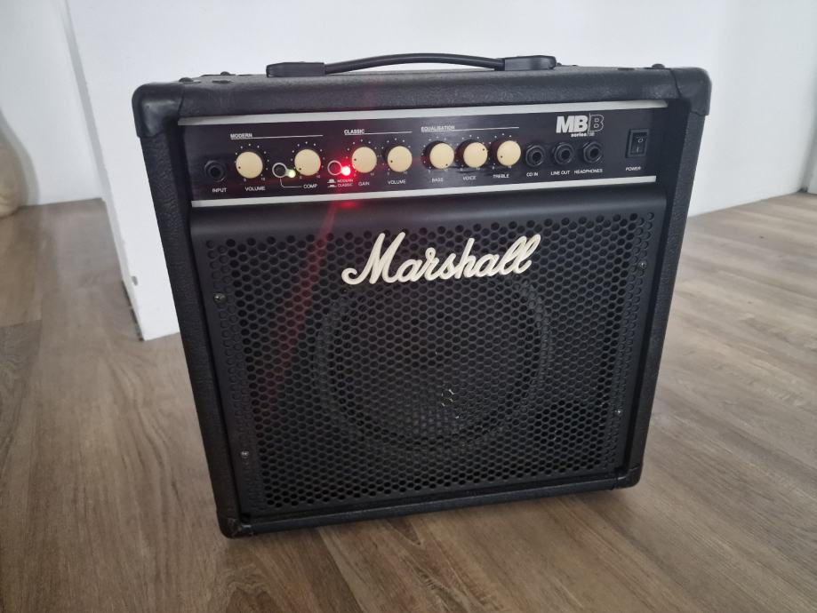 Prodajem Marshall bas gitarsko pojačalo MB 15 idealno za vježbanje kod kuće. Ima dva kanala za izbor clasic&modern, 1x 8" zvučnik, compresor, gain, voice, line out, izlaz slušalice, cd in u odličnom stanju.