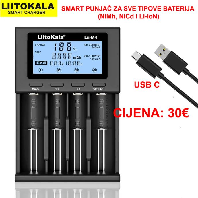Punjač za li-ionske 18650 baterije (BEZ EKRANA!)