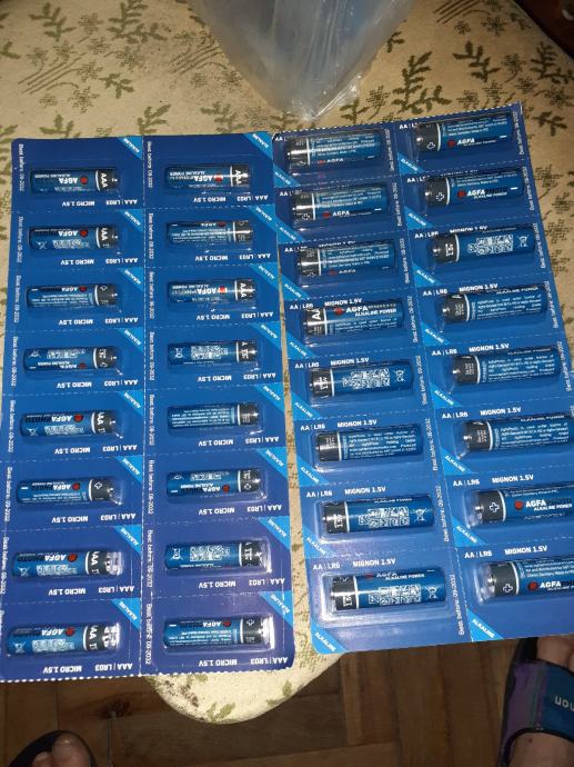 Set ima 16 komada. Novo. Alkalne AGFA od 1,5 V s rokom valjanosti do kraja 2032 god. Za tranzistore, satove, fotice, lampe itd. Cena seta 6€. Dostava besplatna za 3 i više seta za Zg. Tel. 092 11111 83
