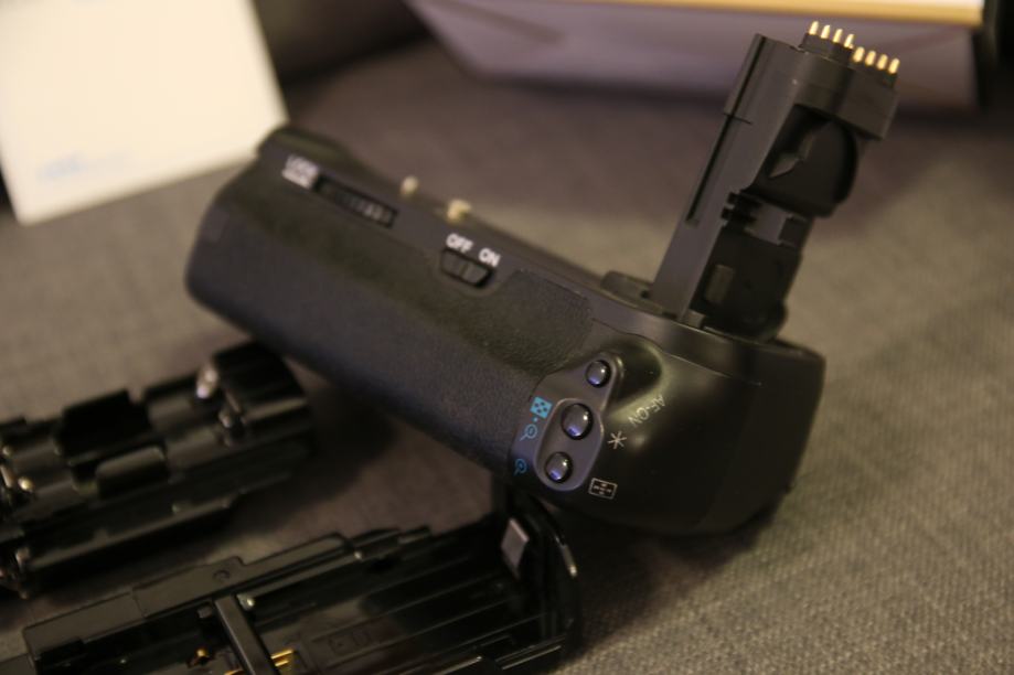 Prodajem Meike battery grip, korišten možda jednom ili dva puta, dakle praktički nov. Dolazi sa svom pripadajućom opremom, odnosno ladicom za dvije LP-E6 baterije, ali i ladicom za AA baterije.