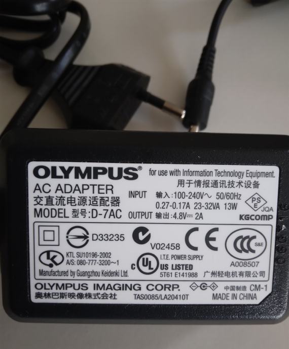OLYMPUS AC ADAPTER Model: D-7AC FOTOAPARAT