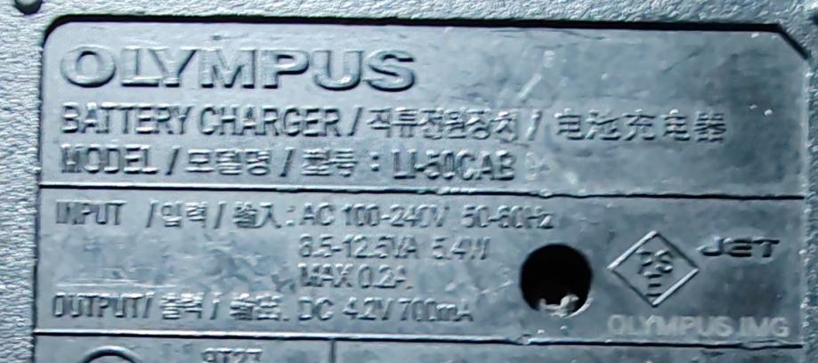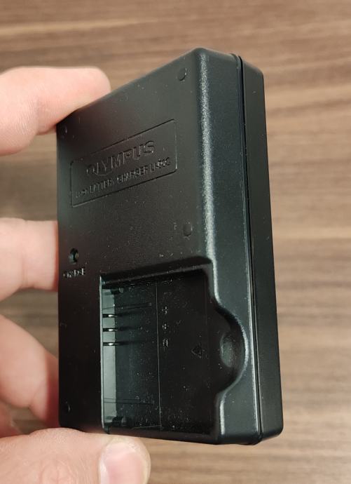 Olympus punjač za fotoaparat s pripadajućim kablom. Kabal nisam slikao ali ide uz njega.