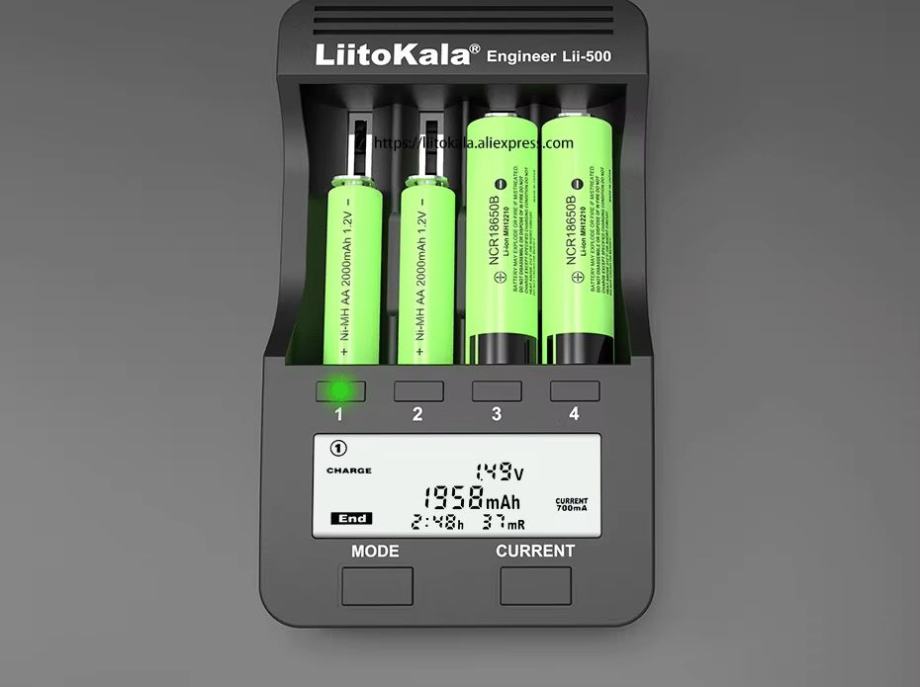 With 4 kinds of charge current adjustment (300mA/500mA/700mA/1000mA), it can be used to charge different sizes (18650/26650/AA/AAA, etc.) of battery simultaneously.