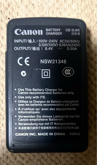 Canon punjac za baterije fotoaparata, model CB-2LWE , 8,4V-0,55A
