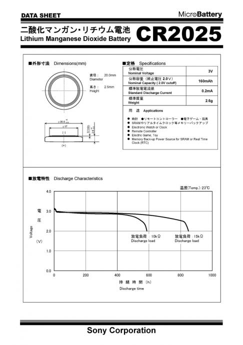Sony CR2025 Lithium 3V baterija