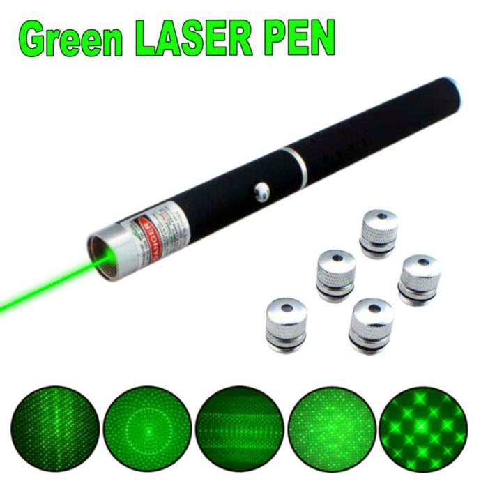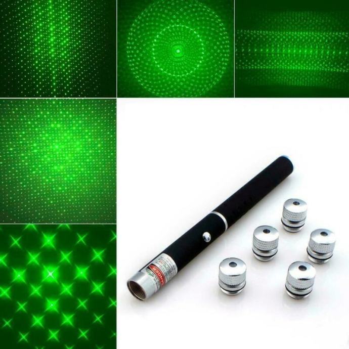 ZELENI ILI CRVENI LASER POINTER 5mW + razni nastavci s efektima + ravna crta na baterije AAA