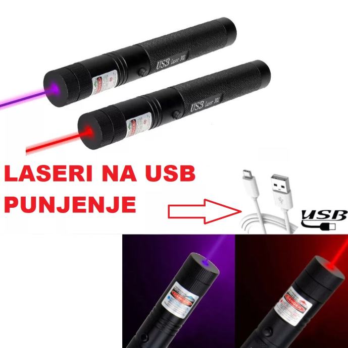 303 LASER CRVENI, LJUBIČASTI POINTER 5mW PUNJENJE putem USB kabal