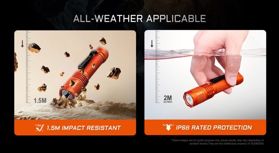 • IP68 Dust-proof and Waterproof Rating: fully submersible to 6.5 feet for up to 30 minutes