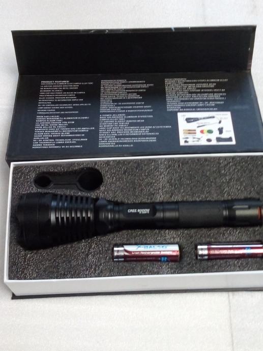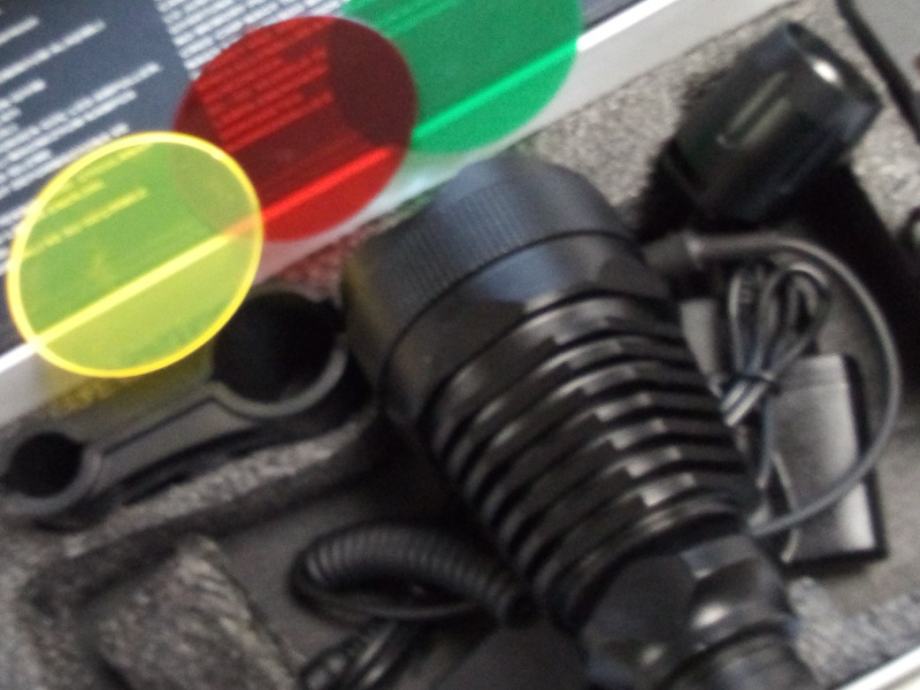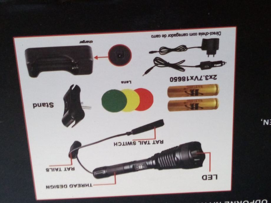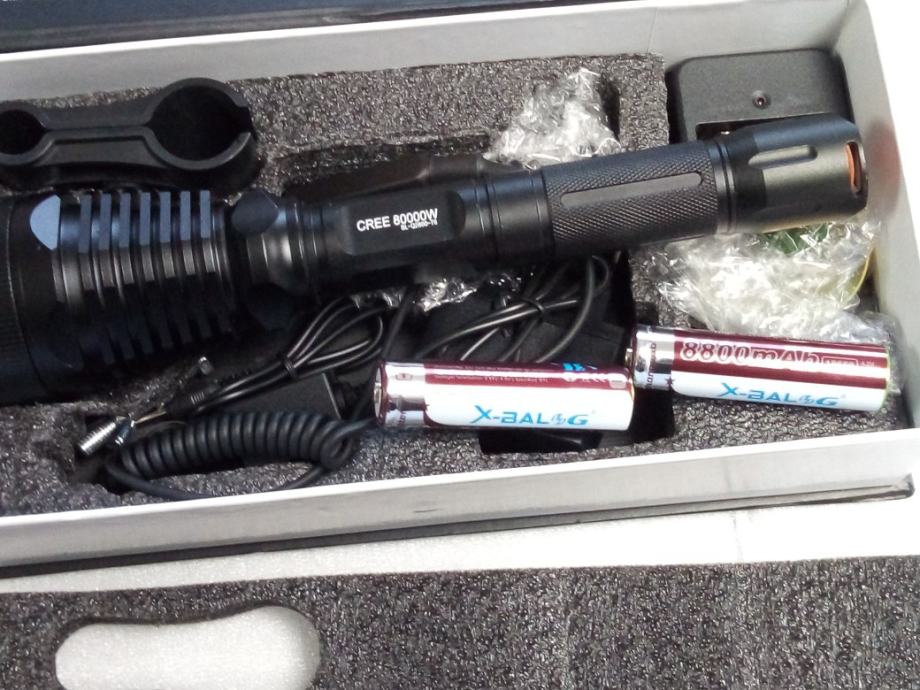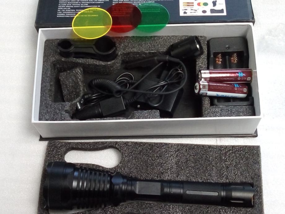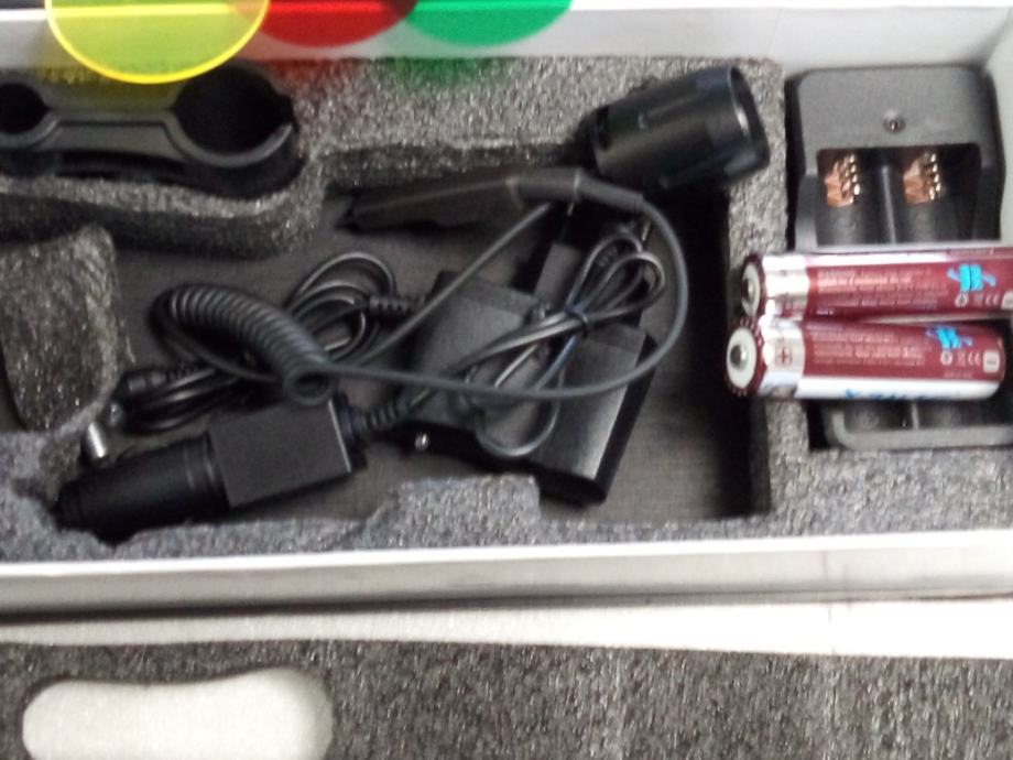 Prodam Lovačku jaku military bateriju sa nosacima i mikro prekidačem i sa svim priborom, te li- ion punjuvim baterijama ,u kompletu.Varijanta vece baterije sa lečama u boji je 750 kn.,a bez obojenih leča je 445 kn. Specifikacije na slikama.Veliki domet do 1 km.bijelo svijetlo k 6500, svjetli kao dan,.Punjive baterije i punjač su u kompletu.Moguča dostava poštom.