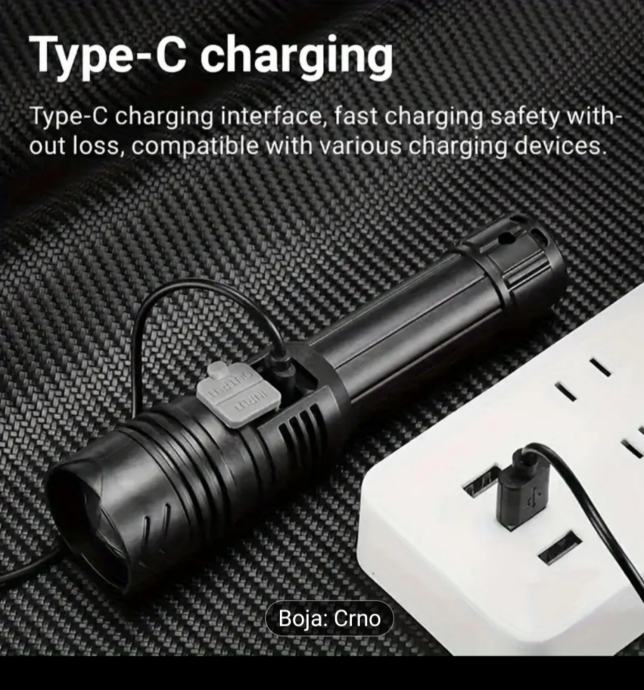 Nova bakterijska punjiva lampa, type C punjenje, kabel uključen. 16.5 CM dužina