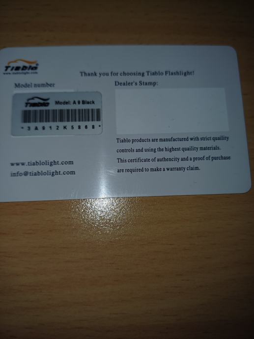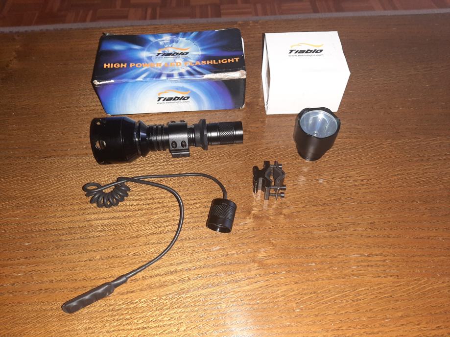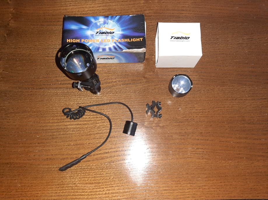 Prodajem vrhunsku Kanadsku svjetiljku TIABLO A9X , dometa do 800 M , vodootporna , garantirano za 50 000 sati rada , 280 lumena pri 1a , 65 lumena 300mA ( realni lumeni , ne prema kineskom mjerenju ) , vremenskom osvjetljenje : visoka svjetlost 2,6 sati , niska 8,5 sati . Rad lampe je na dvije baterije CR 123 A . Paljenje taktički gumb za niski , visoki spektar i isključenje. Duljina lampe je 158 mm. Uz lampu poklanjam 3 punjive baterije , punjač , mikro prekidač za lov s puškom, držač lampe koji se montira na cijev