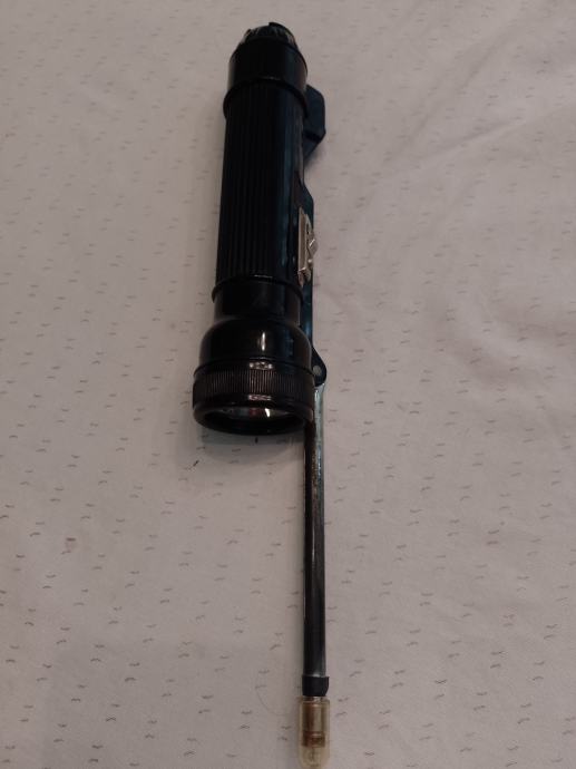 Na svjetiljku je pričvrčena fleksibilna produžna svjetiljka, koja nadjačava glavno svjetlo kada se podigne. Dolazi s dvije rezervne svječice